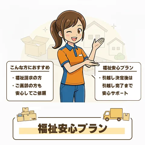 弊社では福祉請求・生活保護受給者の方のお引越しも数多くご依頼頂いております。引越し決定後の担当者とのやり取りなどもスムーズにご対応致します。